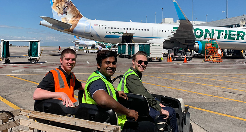 While Thomas honed her skills in an exotic part of the world, Adam Thompson, a senior majoring in management and marketing, enjoyed almost three months in Denver as a ground-handling contract intern for Frontier Airlines and taking steps toward his long-term goal of becoming a commercial airline pilot.